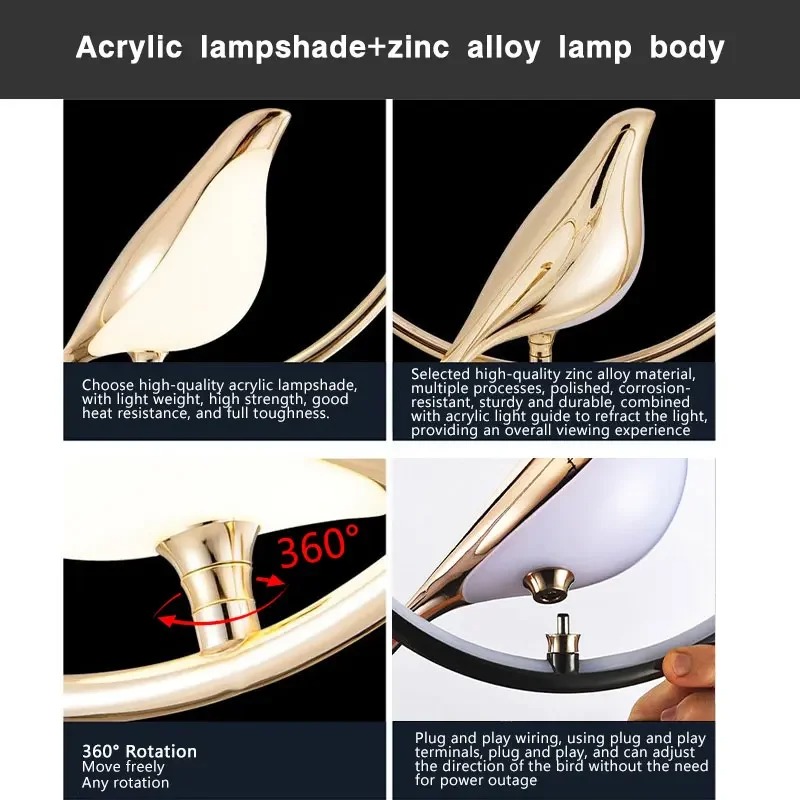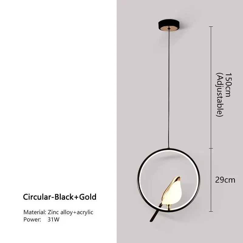 لوستر لاکچری و فوق مدرن آویز وارداتی تکی طرح پرنده با نور ال ای دی و با دکوری شیک رینگ گرد