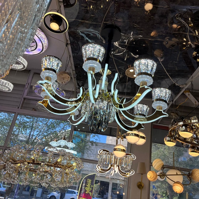 پرنورترین لوستر کریستالی وارداتی و لوکس برای سالن پذیرایی و ناهارخوری و نشیمن و خواب و هتل و تالار و آتلیه در 6شعله و 8 شعله و 18 شعله به همراه ست دیوارکوب
