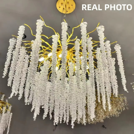 لوستر درختی وارداتی سقفی و آویز شاخه نبات LED پست مدرن ، با کریستال درخشنده و بلند و پرپشت K9