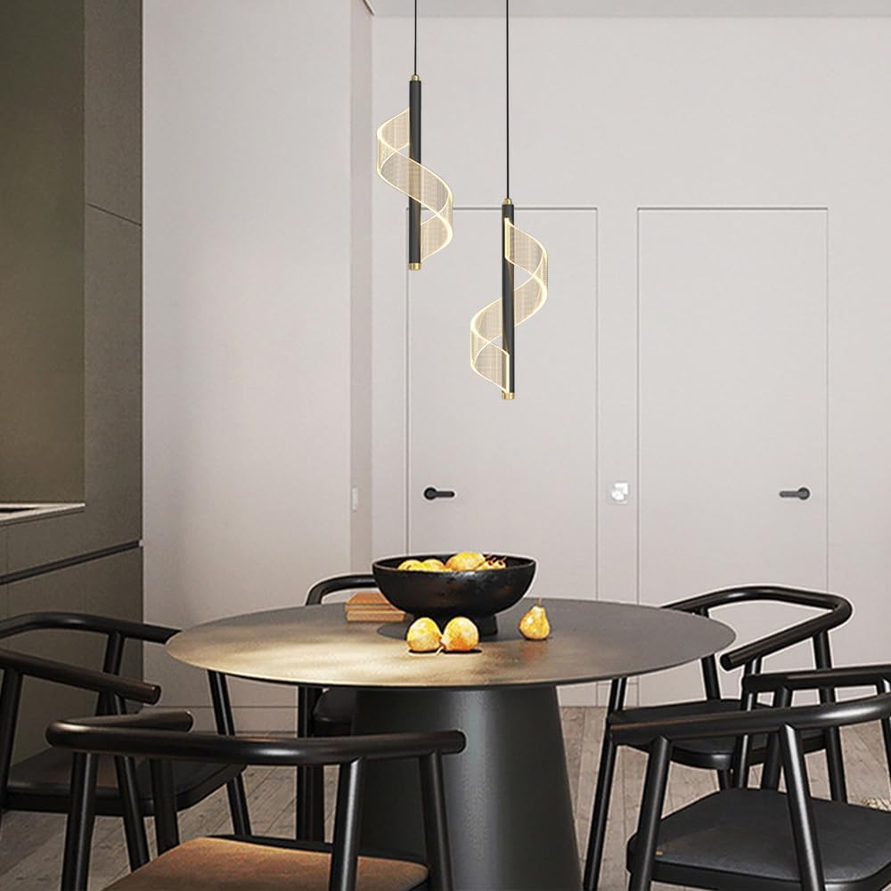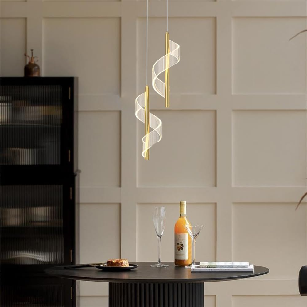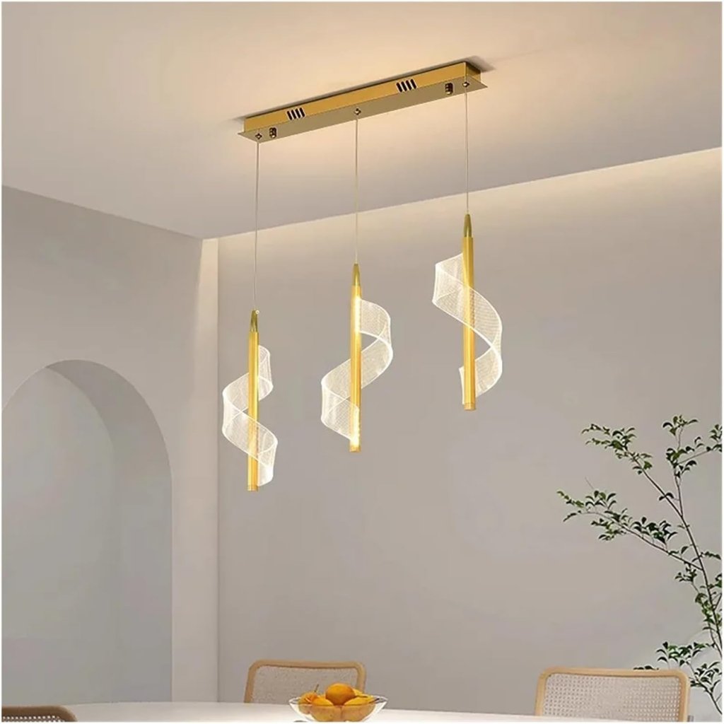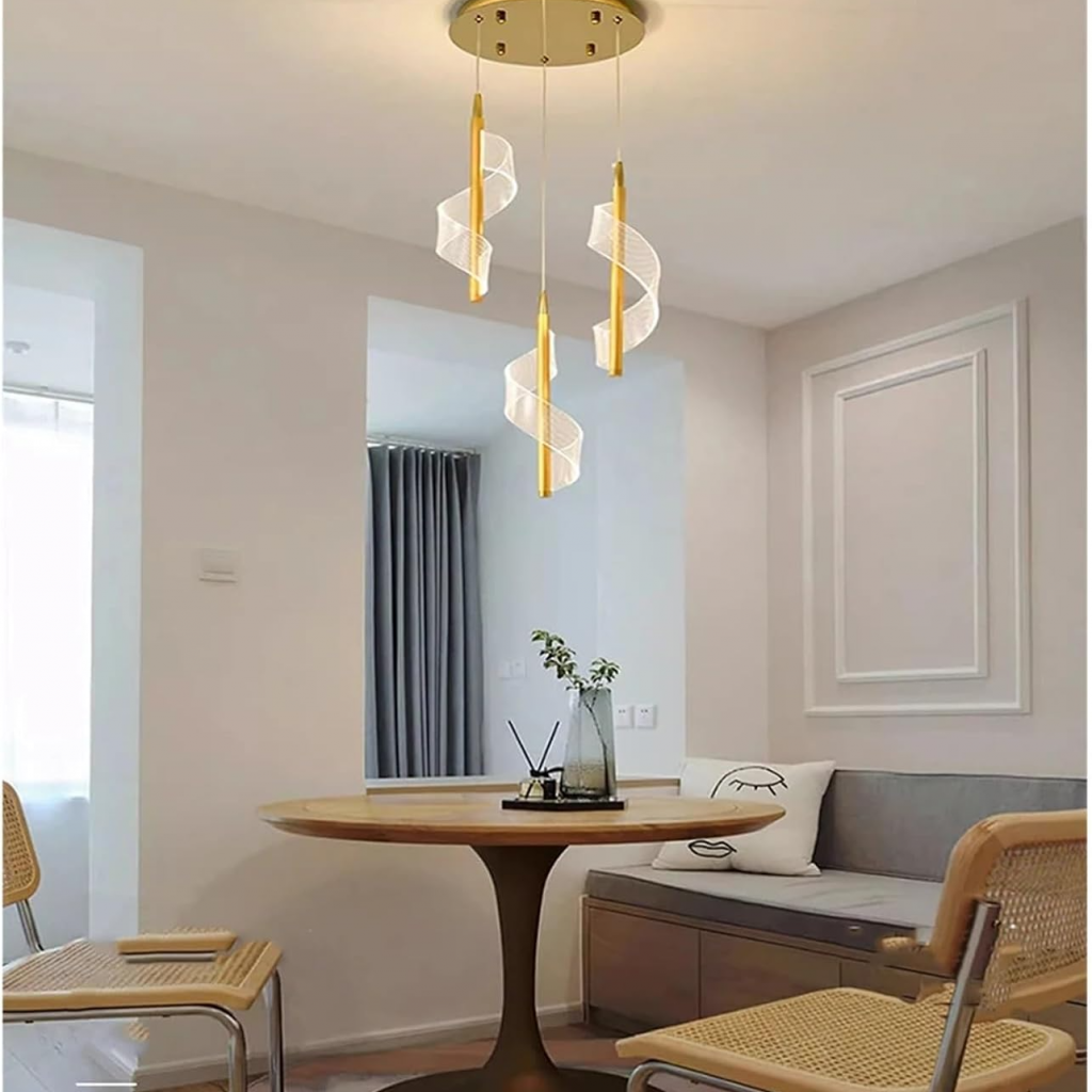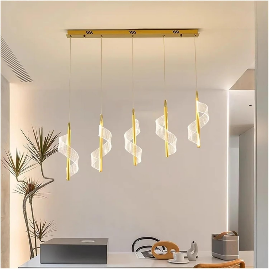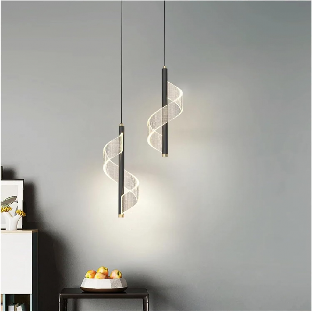 لوستر مارپیچ و موجی آویز LED مدرن -چراغ آویز اتاق خواب و لامپ آویز اتاق غذاخوری- کنار تلویزیون و باکس کابینت و آویز میز بار و قهوه