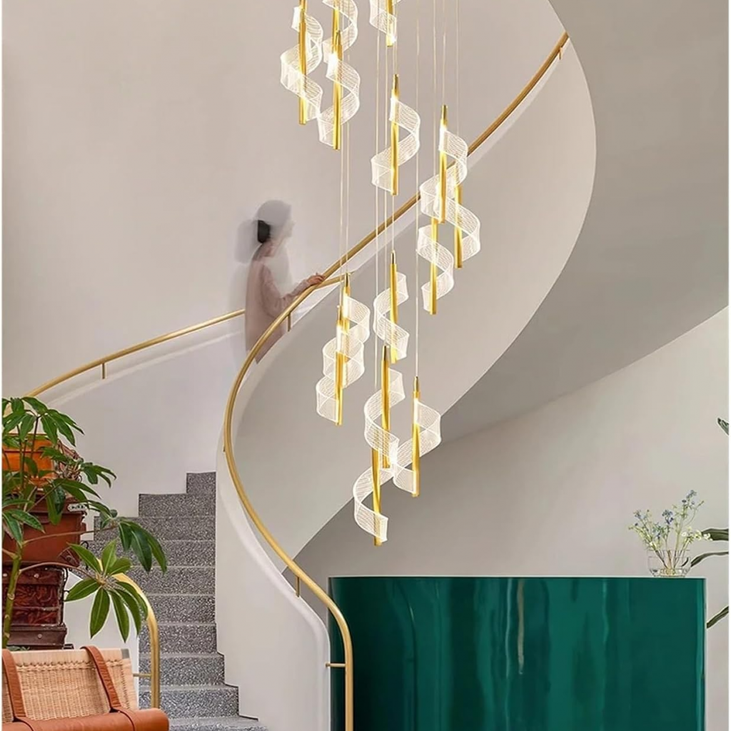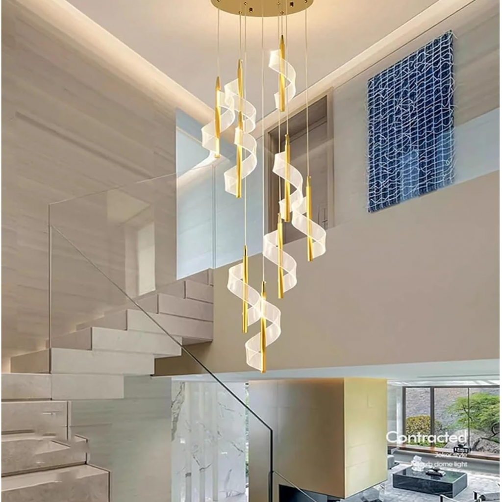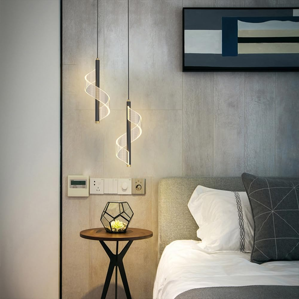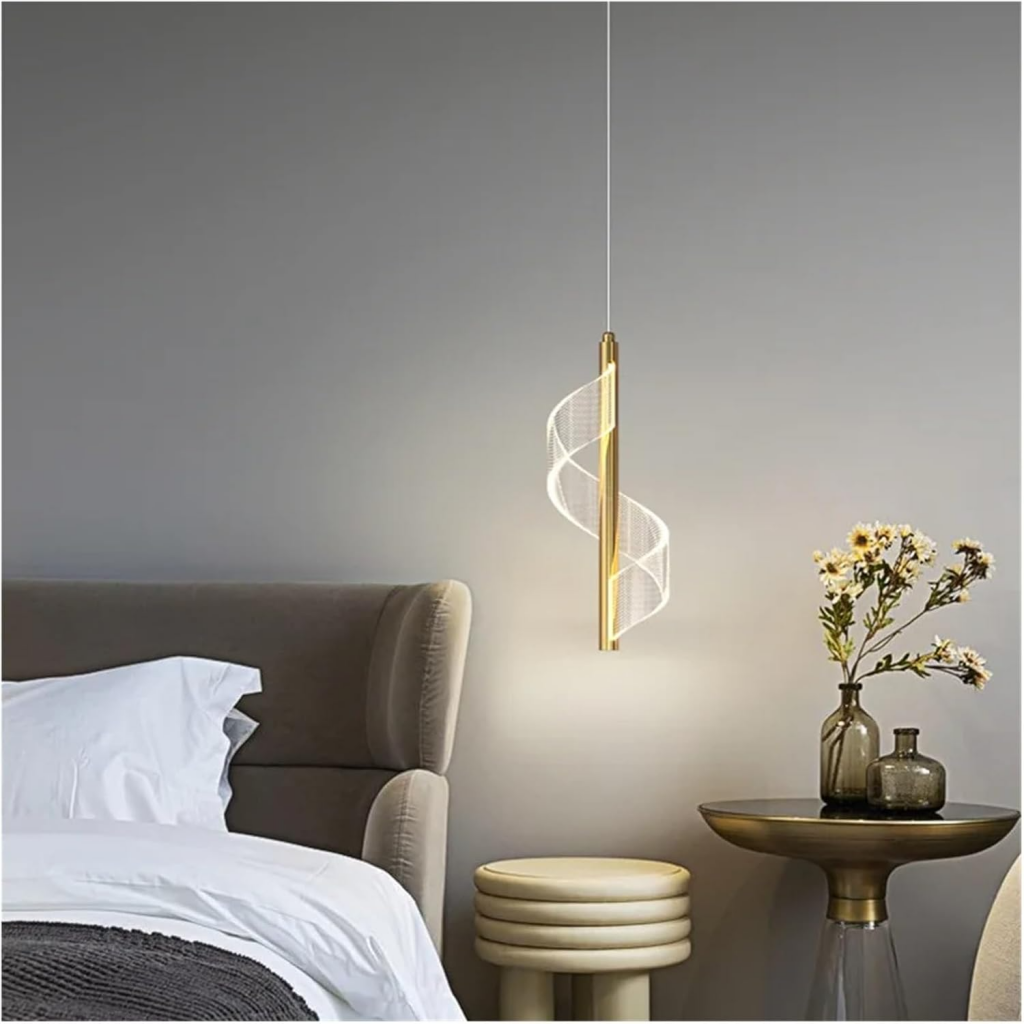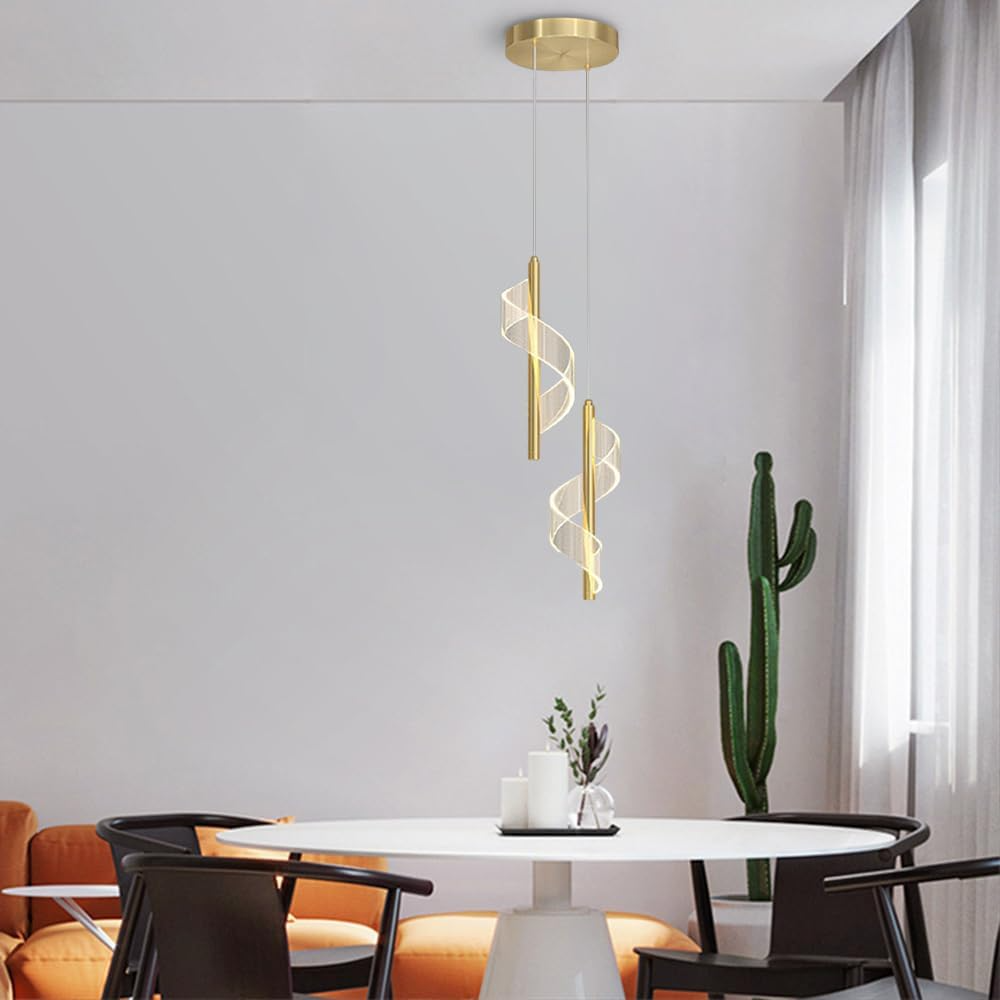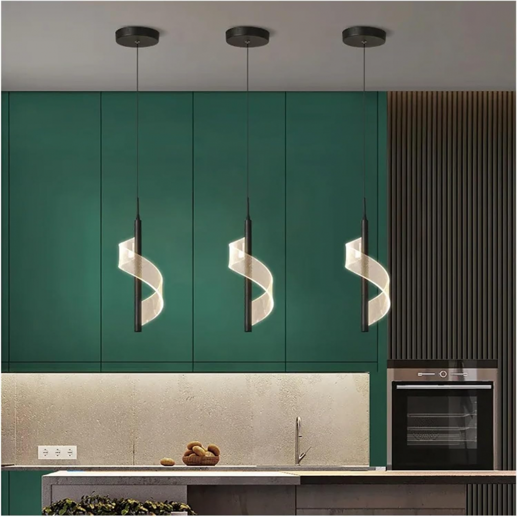 لوستر مارپیچ و موجی آویز LED مدرن -چراغ آویز اتاق خواب و لامپ آویز اتاق غذاخوری- کنار تلویزیون و باکس کابینت و آویز میز بار و قهوه