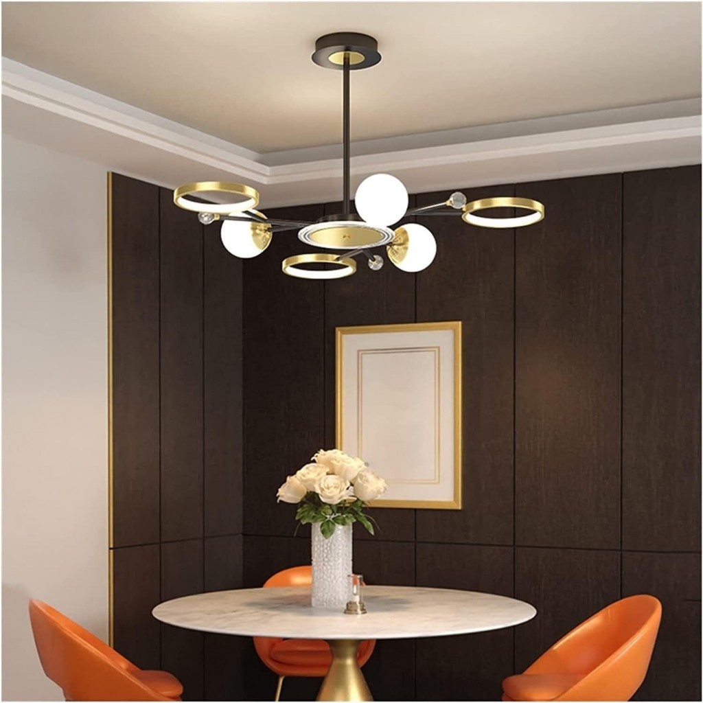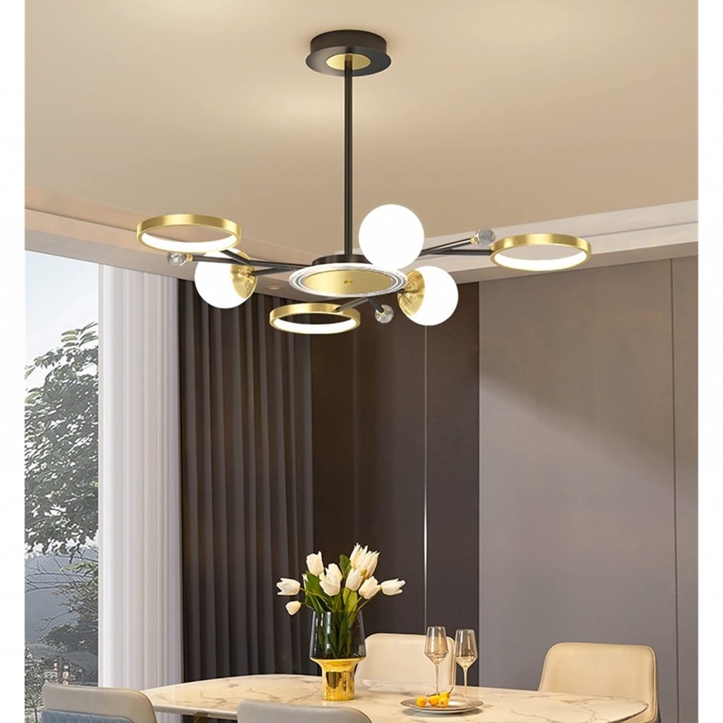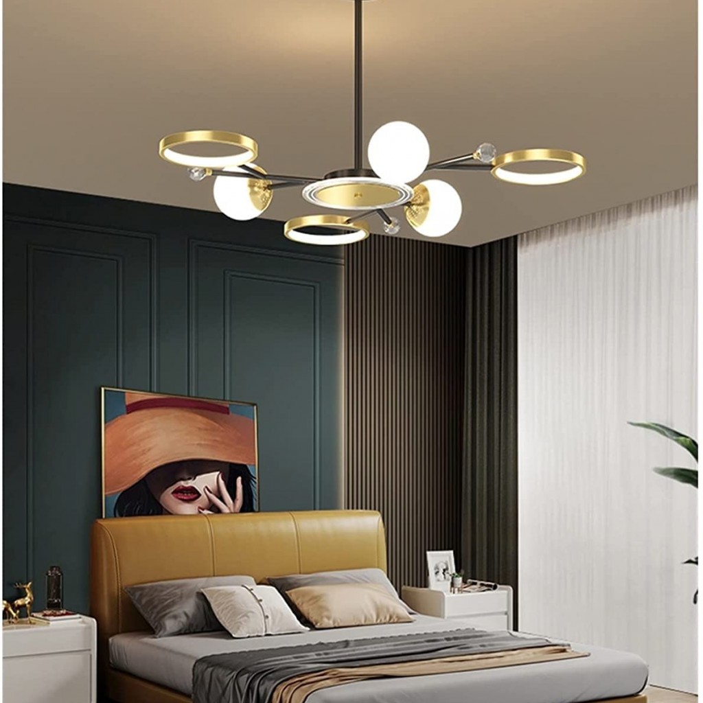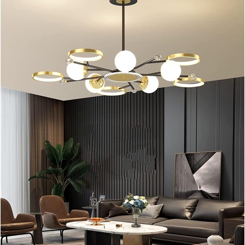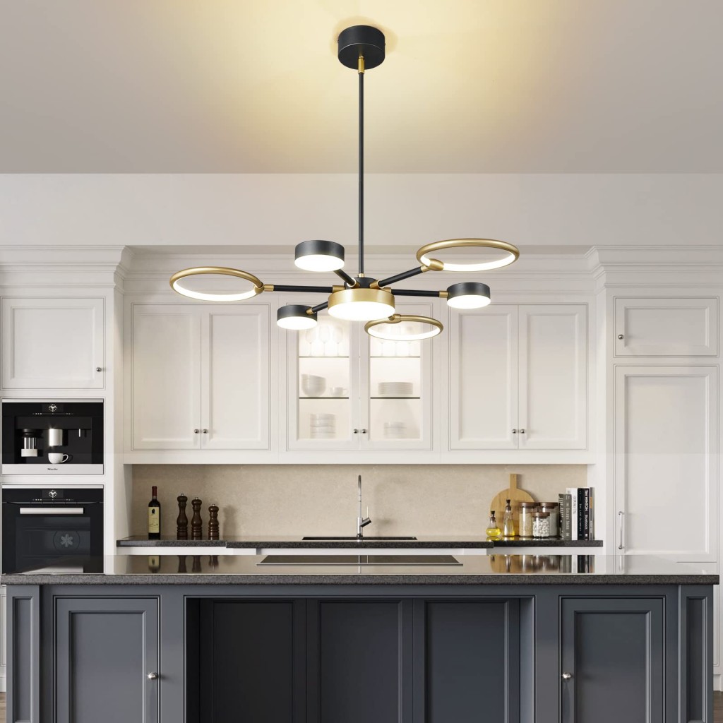 لوستر LED مدرن و مینیمال مشکی -طلایی با ست کامل برای اتاق پذیرایی و نشیمن، لوستر سقفی اتاق خواب، چراغ سقفی آشپزخانه با ارتفاع قابل تنظیم و وزن سبک برای سقف های کناف و کوتاه
