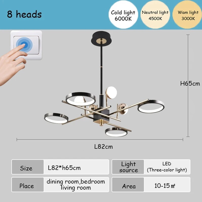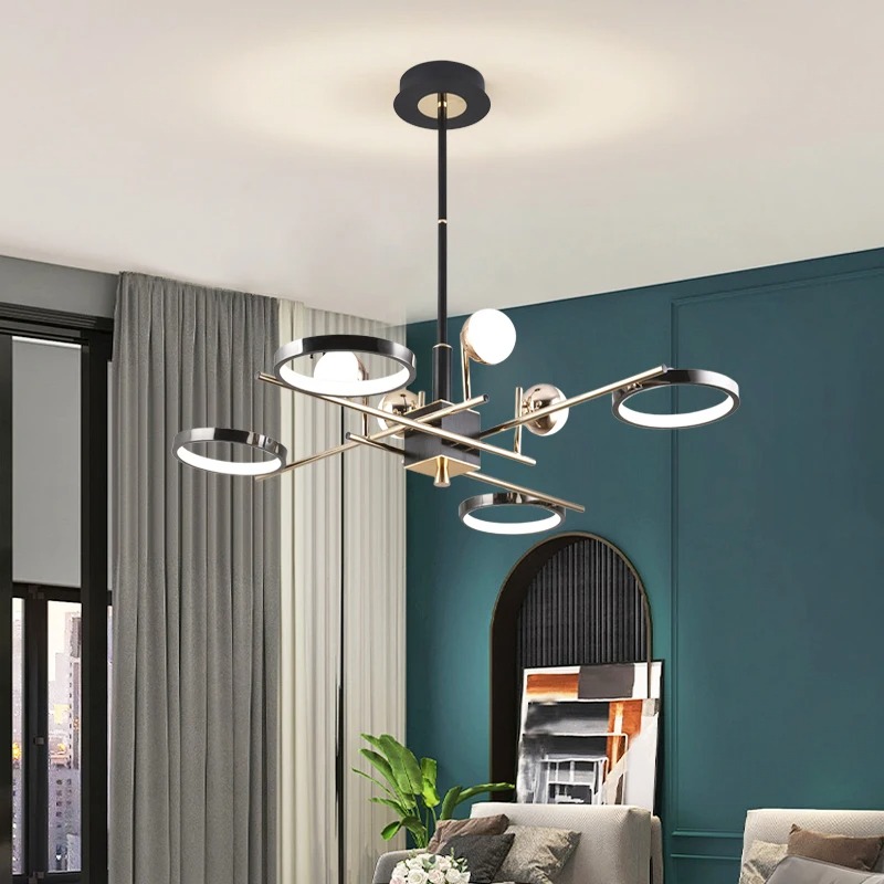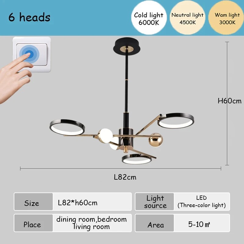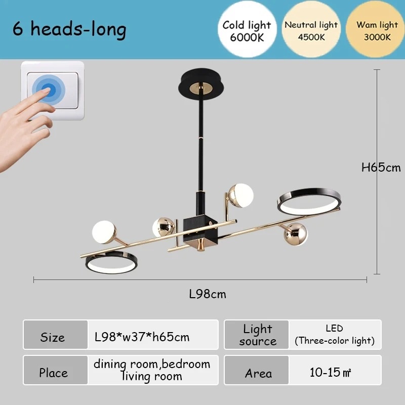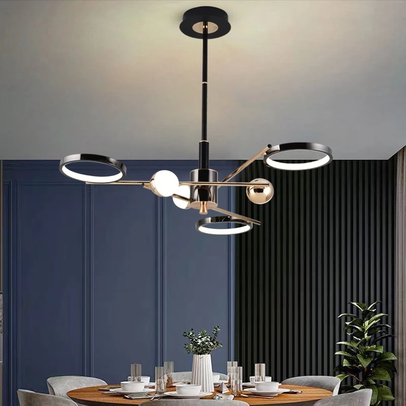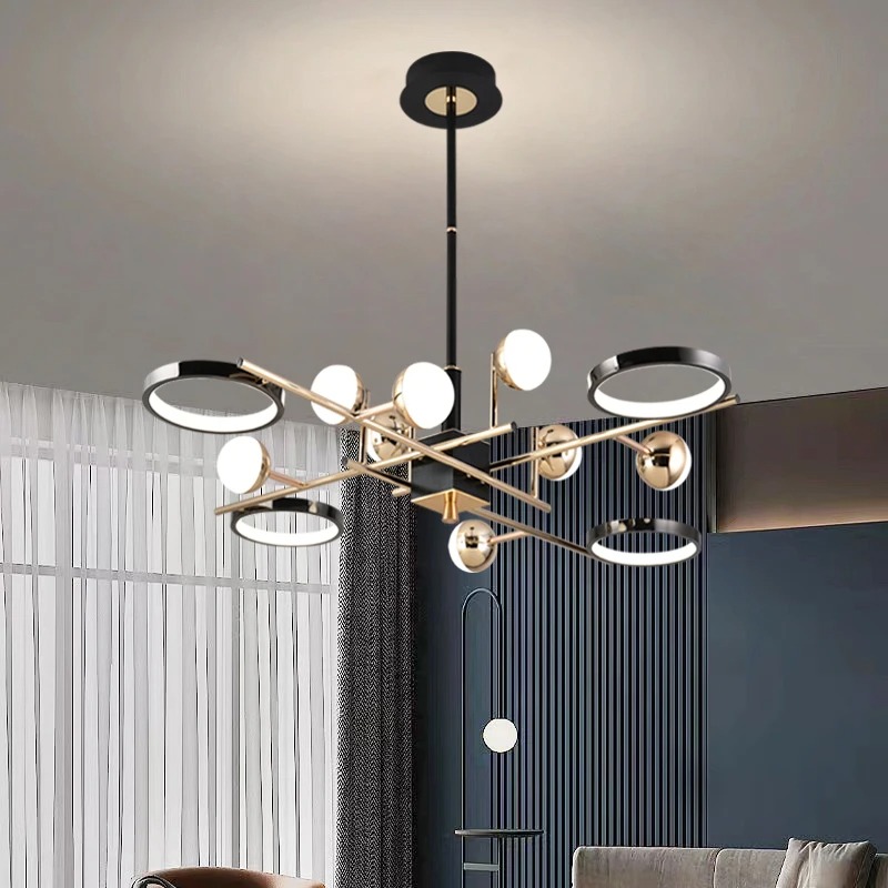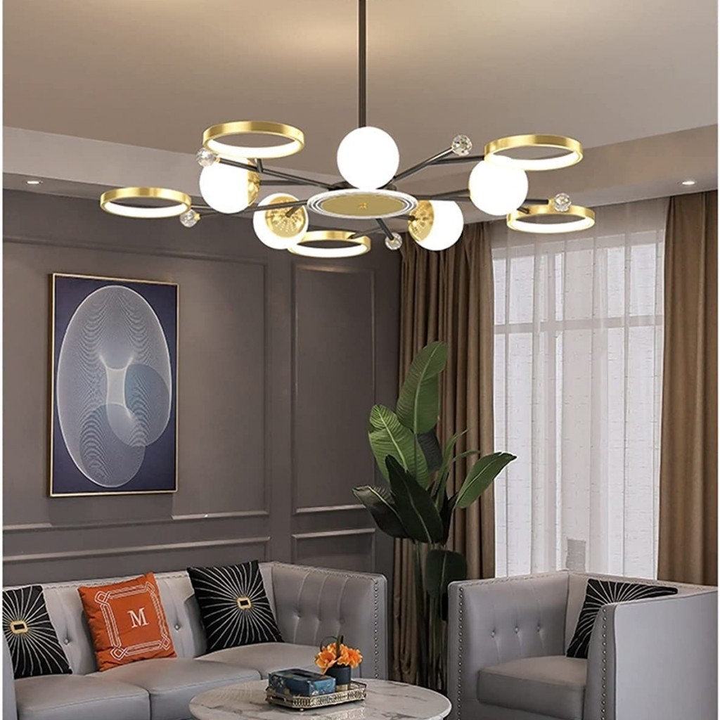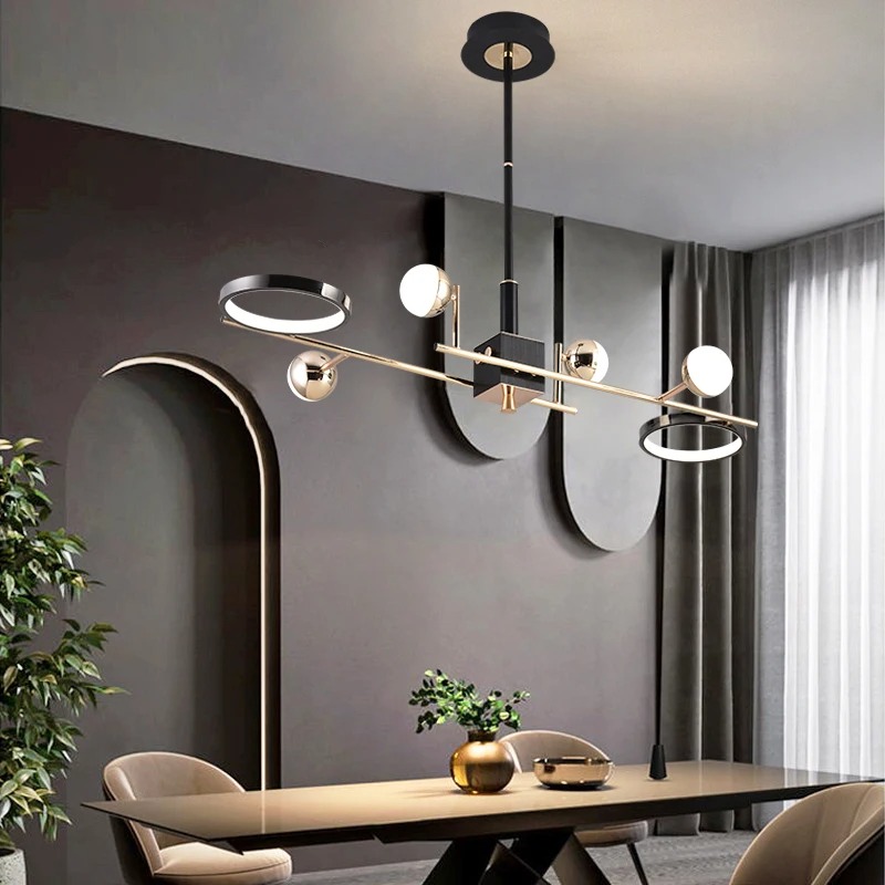 لوستر LED مدرن و مینیمال مشکی -طلایی با ست کامل برای اتاق پذیرایی و نشیمن، لوستر سقفی اتاق خواب، چراغ سقفی آشپزخانه با ارتفاع قابل تنظیم و وزن سبک برای سقف های کناف و کوتاه