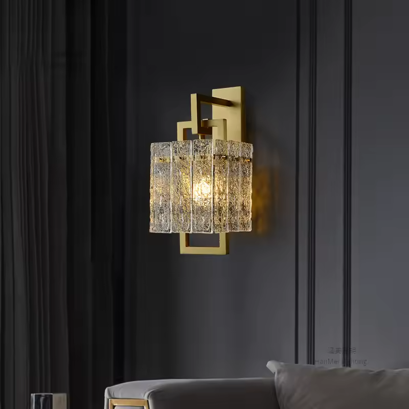 جدیدترین چراغ دیواری مربع مسی کریستال طرح موج برای اتاق نشیمن مینیمالیستی، پس زمینه راهرو، راه پله، اتاق خواب پست مدرن، رستوران و بار