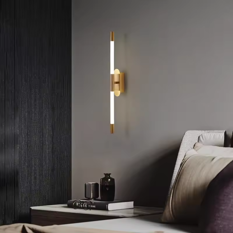 چراغ دیوارکوب خطی لوله ای با بدنه سفید مات و طلایی 80 سانت مناسب کنار تلویزیونو تختخواب و پس زمینه مبلمان و کنارجاکفشی و ورودی ها