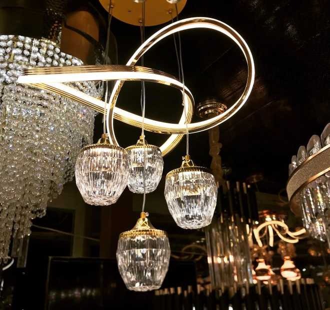 لوستر سبک و پرنور چهارشعله به همراه رینگ نور مناسب اتاق خواب و نشیمن و غذاخوری و پذیرایی کوچک و آشپزخانه با ارتفاع قابل تنظیم و نور ال ای دی سه حالته